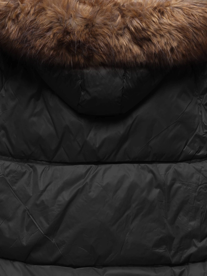 - Damska kurtka z asymetrycznym dołem i futerkiem przy kapturze