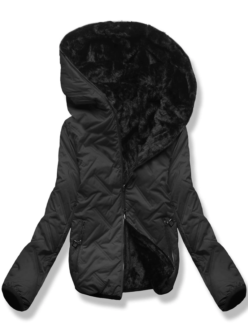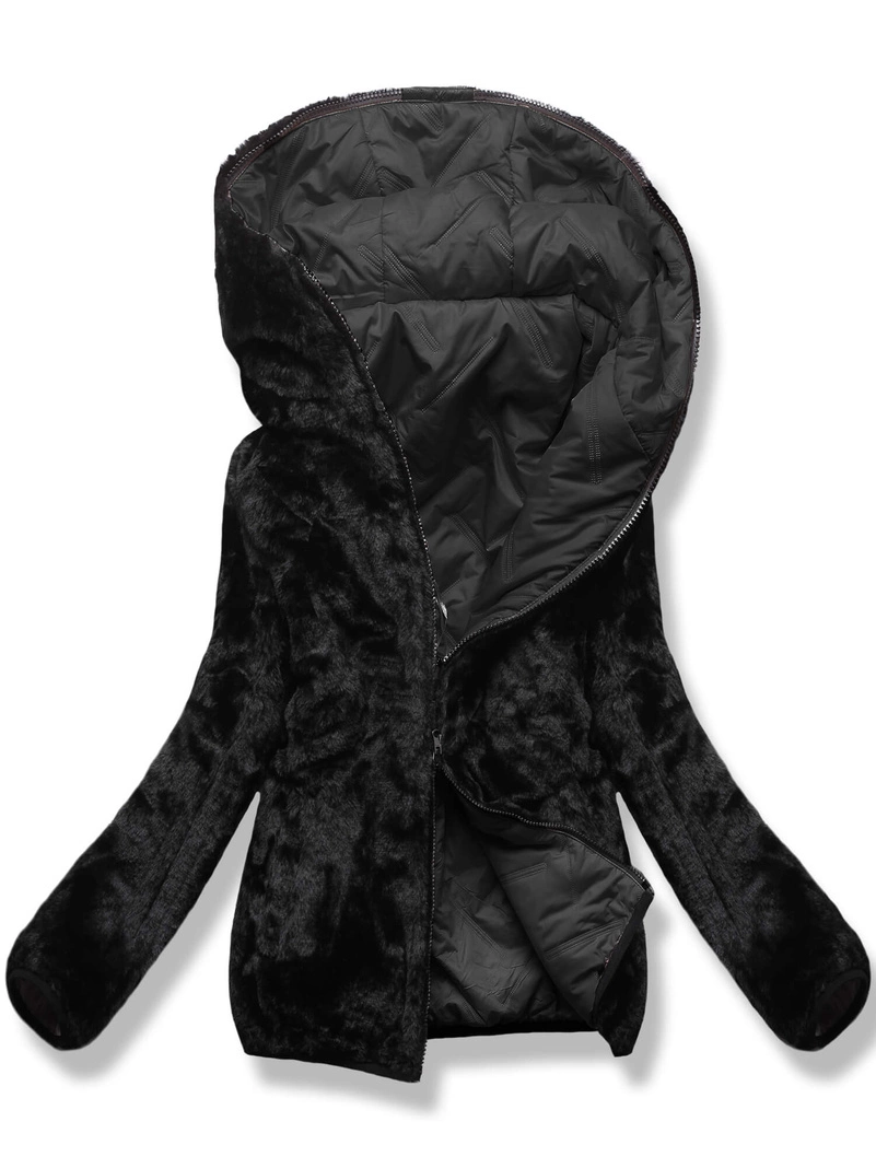 - Damska dwustronna kurtka 2w1 z kapturem i futerkiem