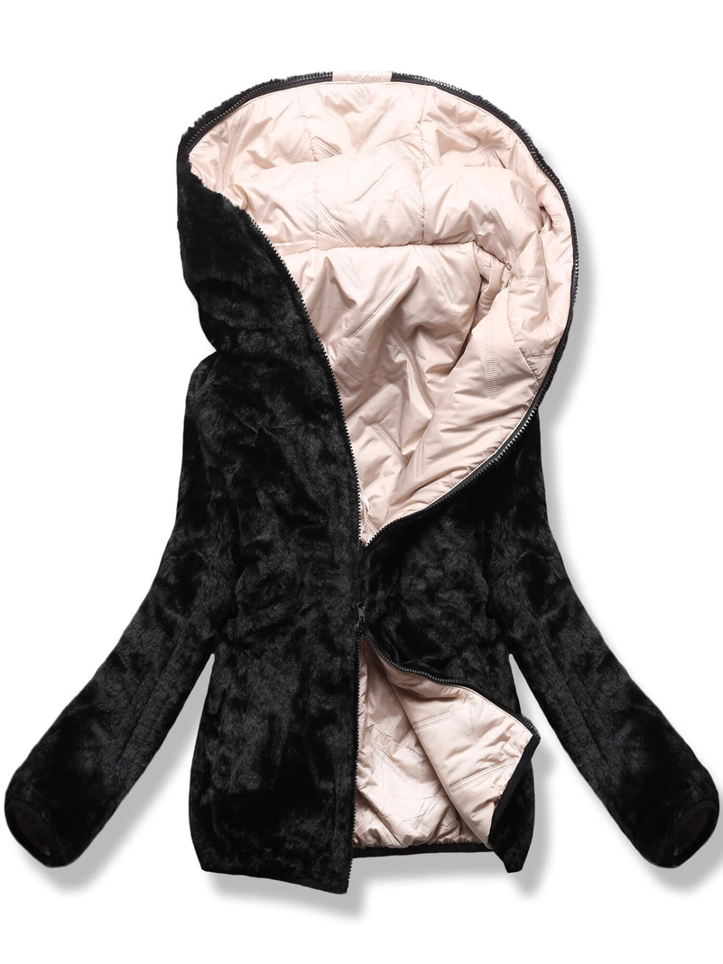 - Damska dwustronna kurtka 2w1 z kapturem i futerkiem