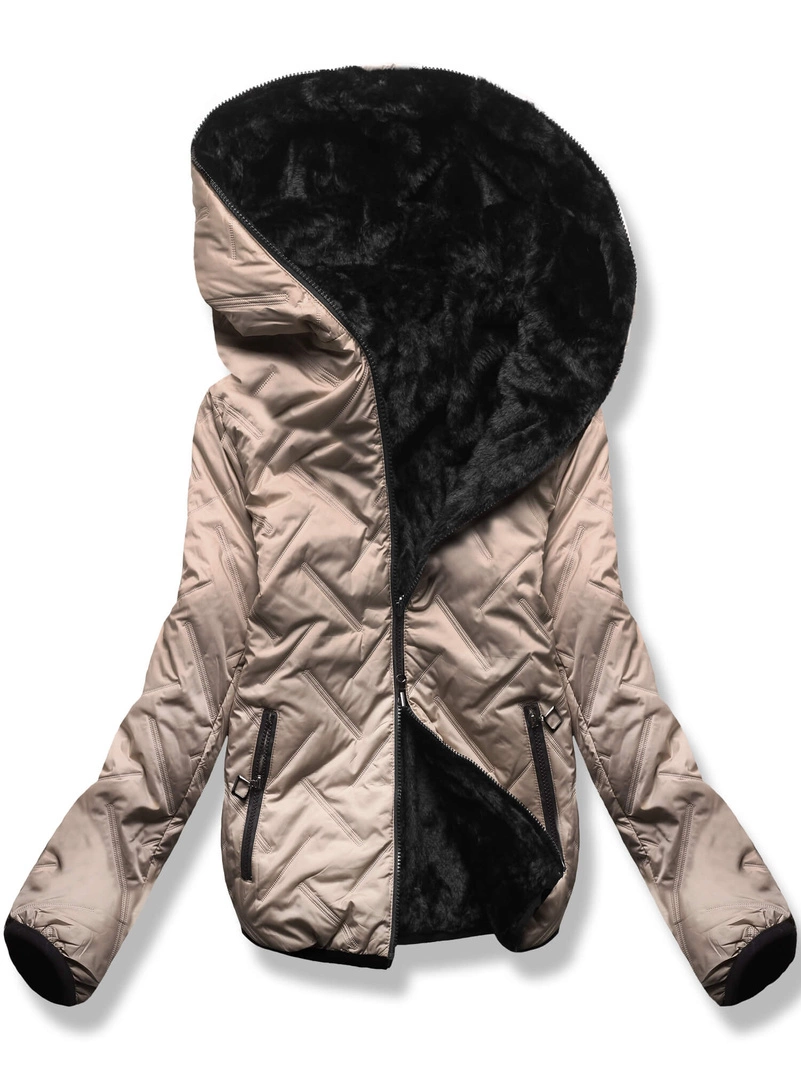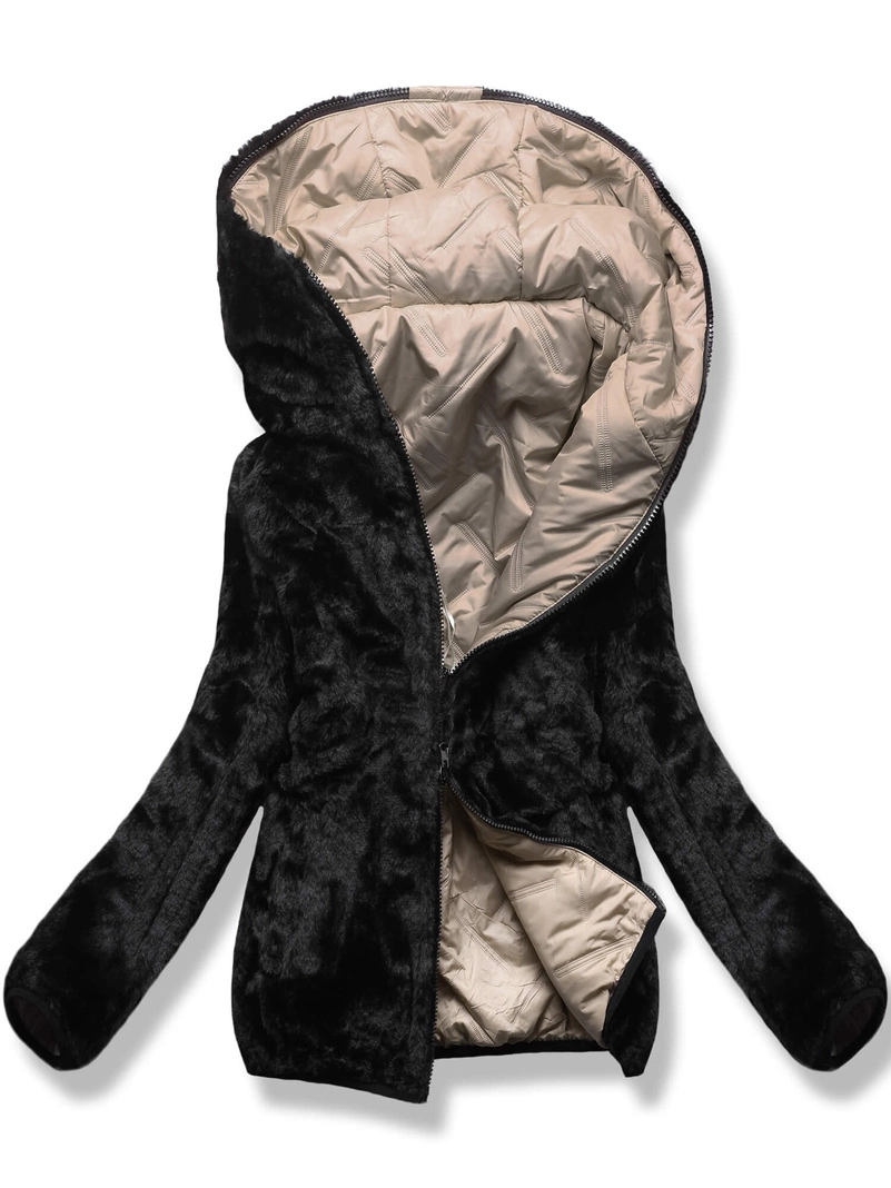 - Damska dwustronna kurtka 2w1 z kapturem i futerkiem