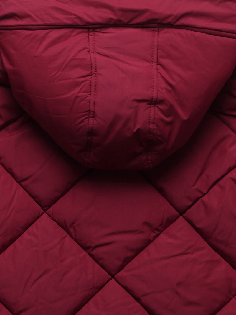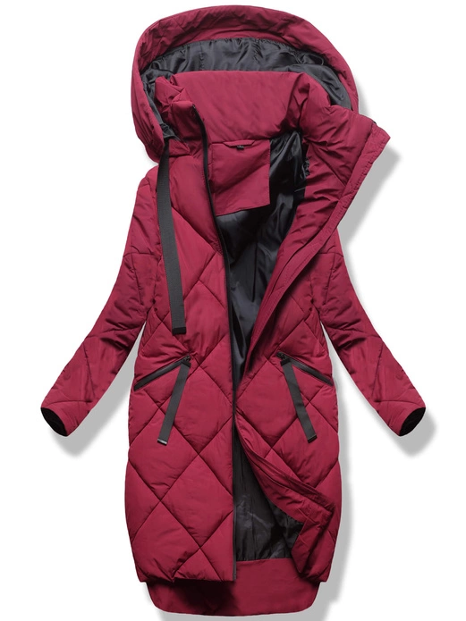 Opinie o Bordowa zimowa długa kurtka płaszczyk