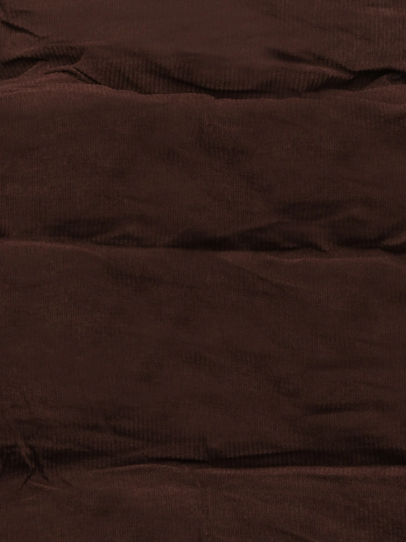 Brązowa sztruksowa krótka pikowana zimowa kurtka z kołnierzem na futerku zapinana na suwak