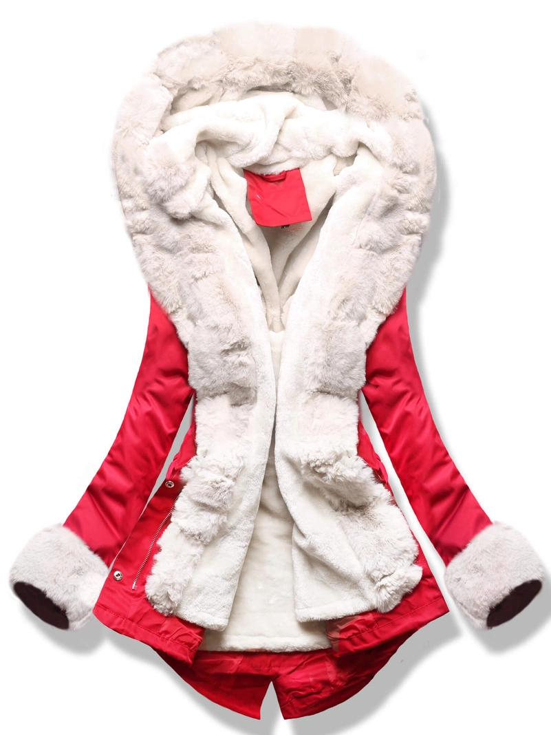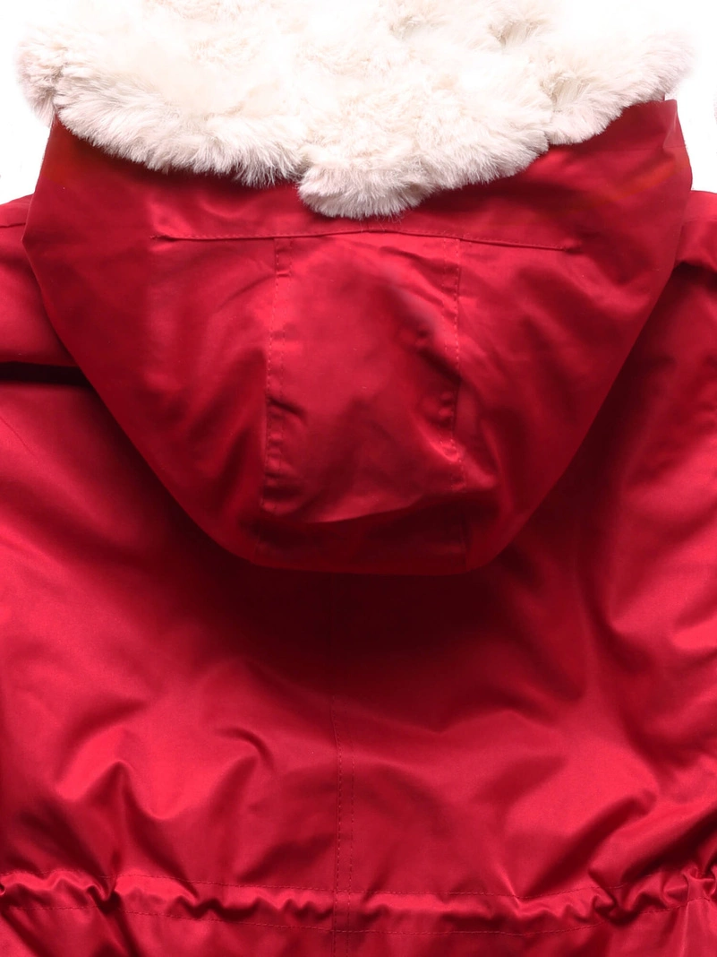 Czerwona ciepła kurtka parka na misiu z kapturem