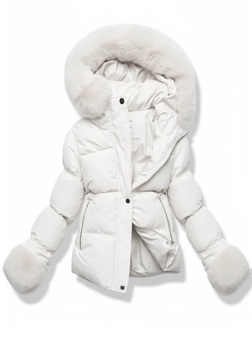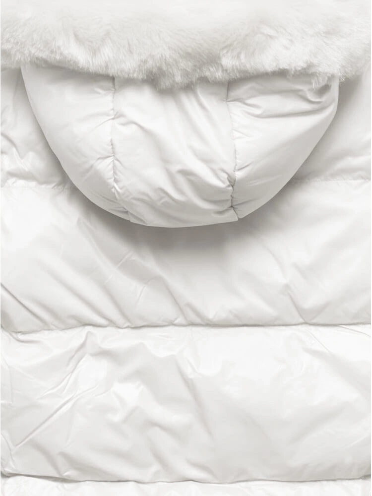 Biała genialna damska zimowa kurteczka z futerkiem