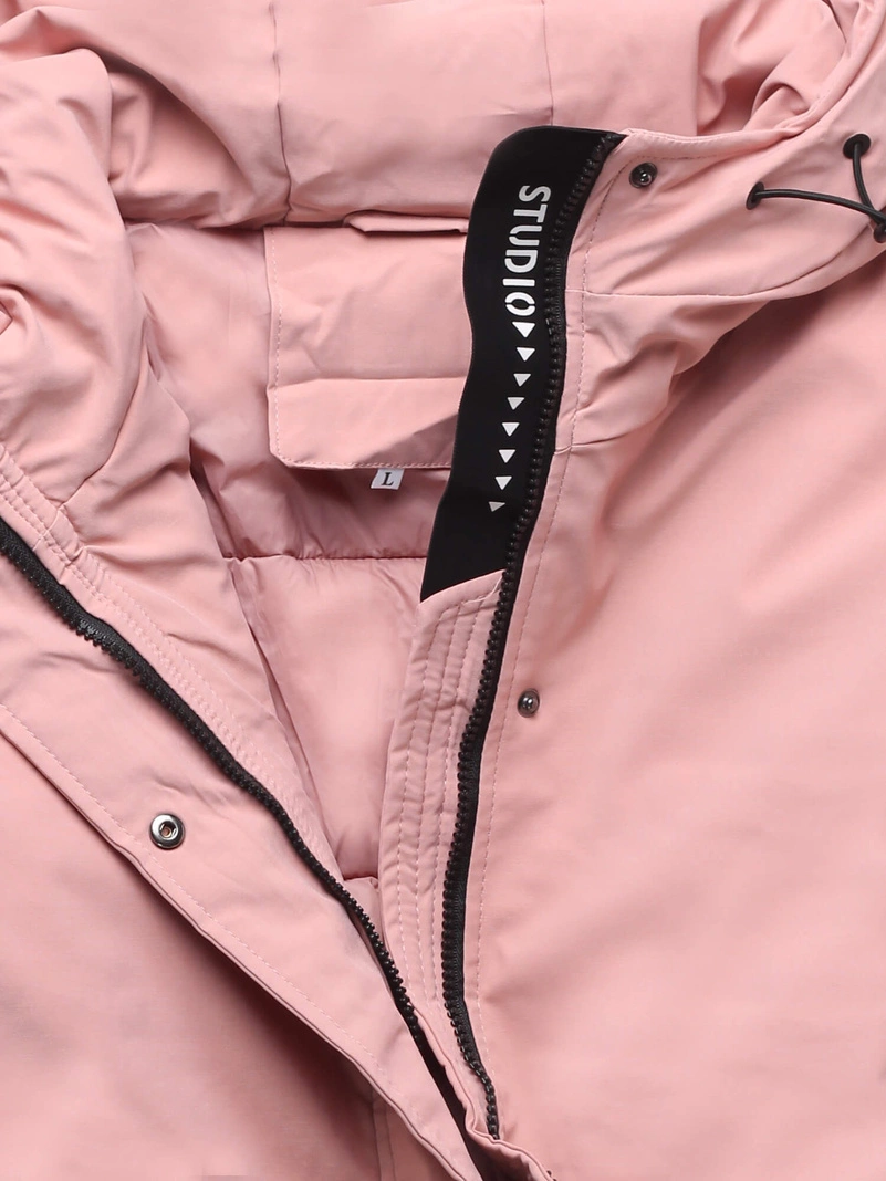 Różowa kapitalna kurtka damska z kapturem i stójką