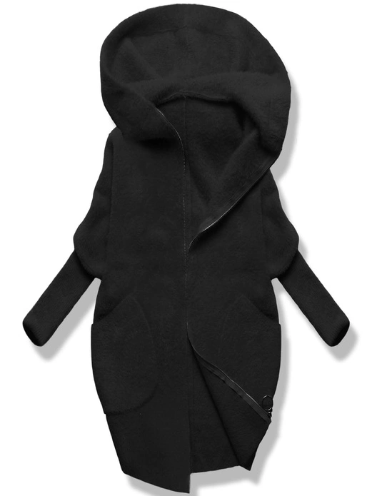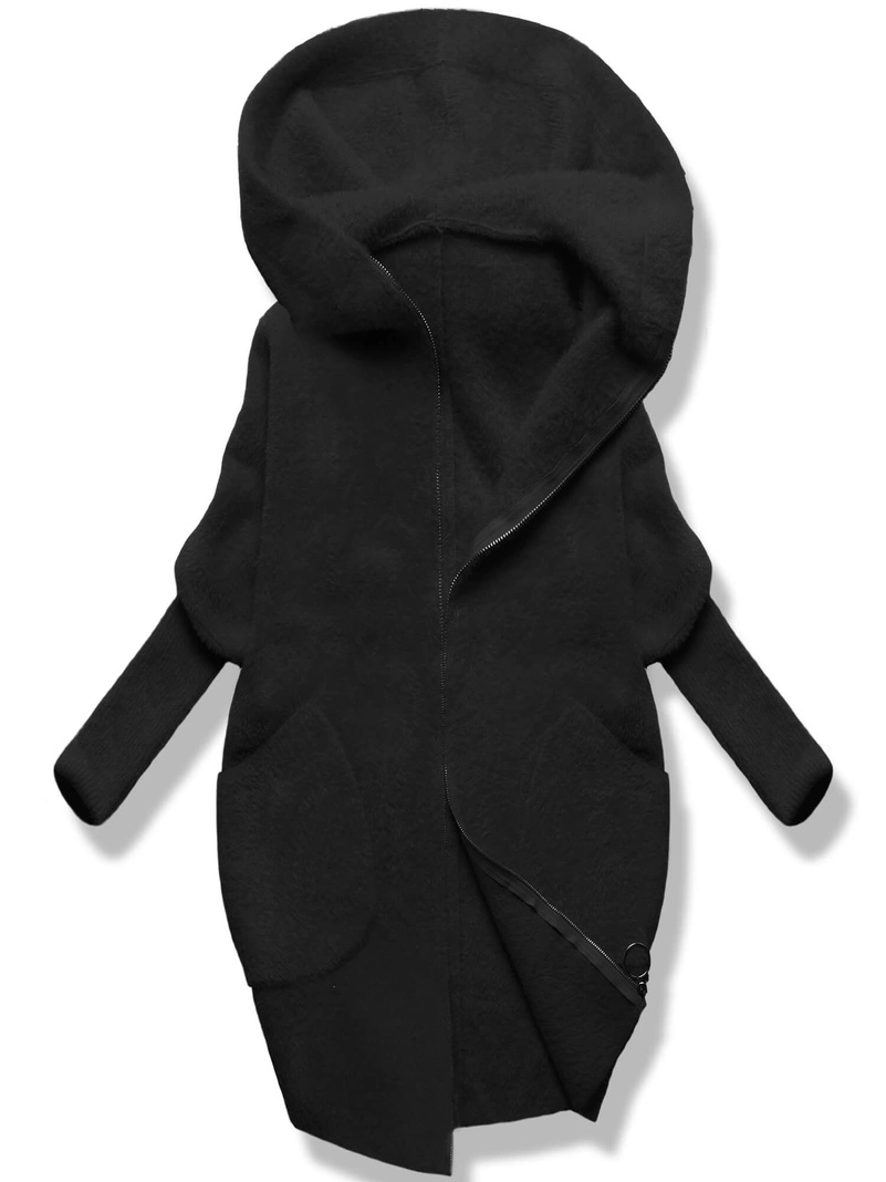 Czarna damska narzutka alpaka z kapturem