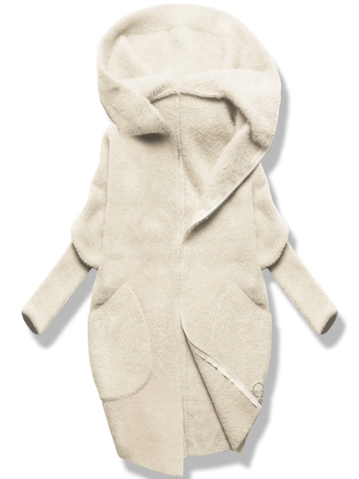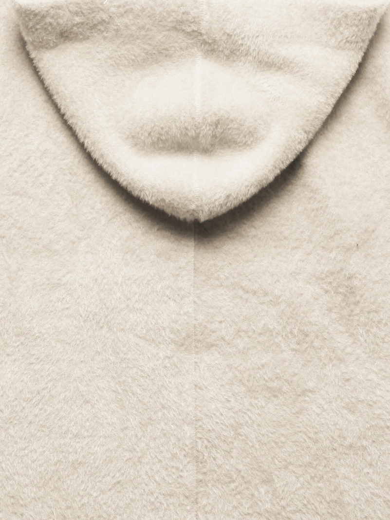 Ecru damska narzutka alpaka z kapturem