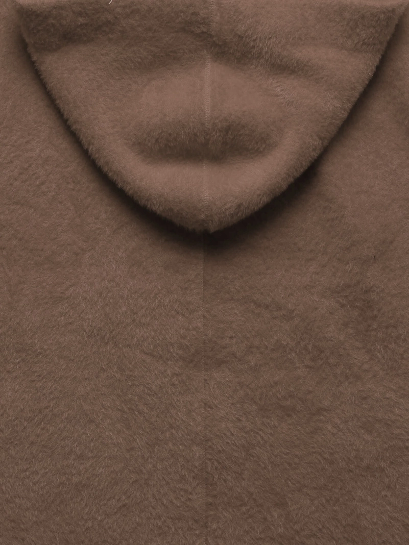 Czekoladowa damska narzutka alpaka z kapturem