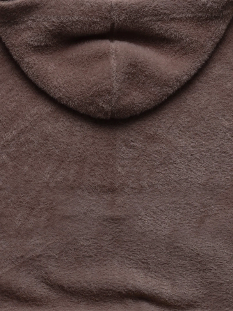 Czekoladowa genialna damska narzutka alpaka z kapturem