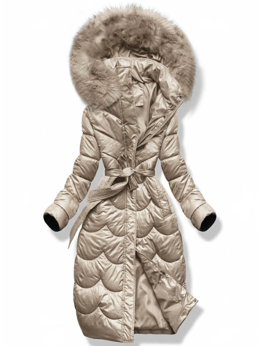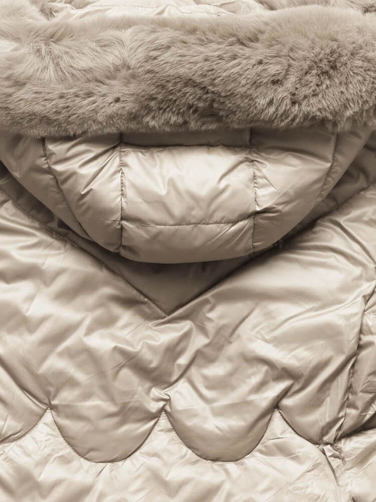 Beżowy zimowy damski fantastyczny płaszcz z kapturem