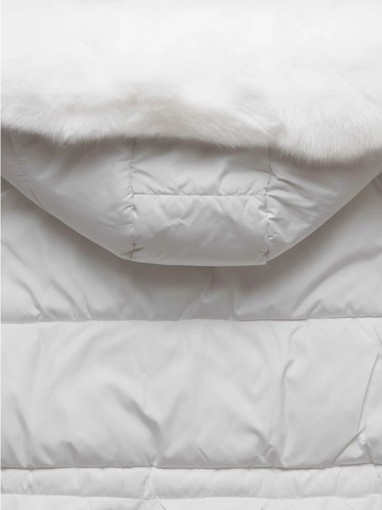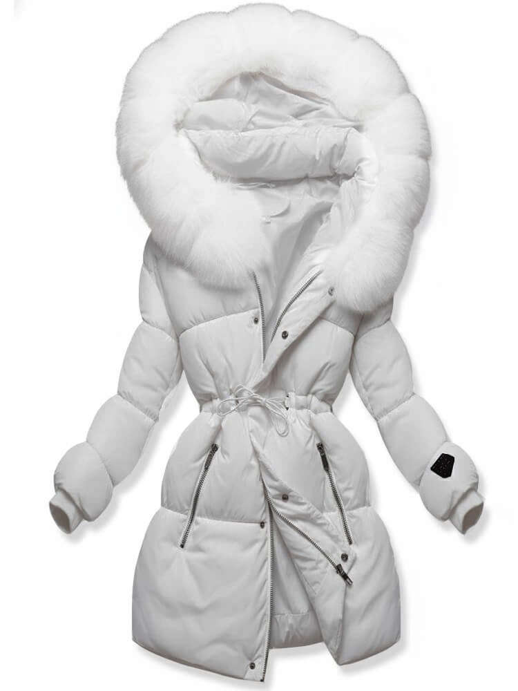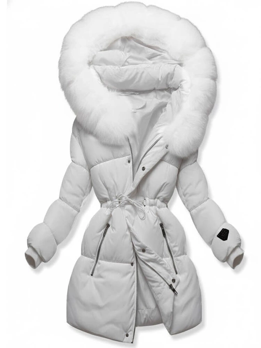 Biała rewelacyjna damska zimowa kurtka z kapturem netmoda