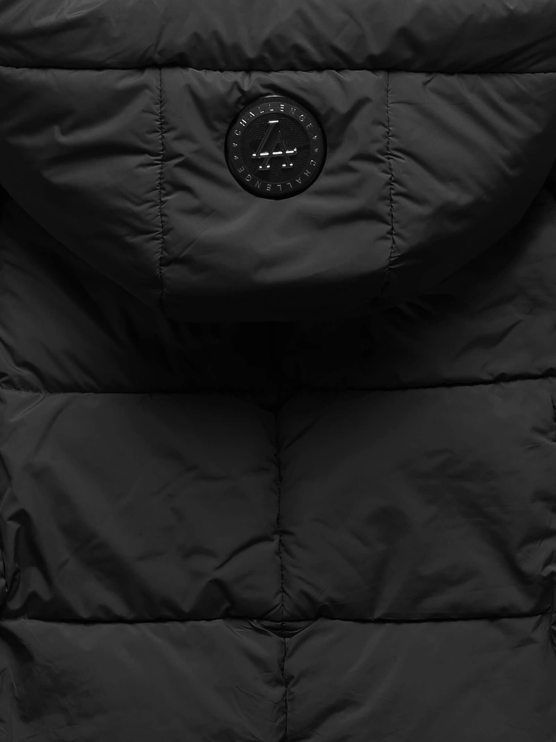 Czarna damska puchowa zimowa damska kurtka z unikalnym kapturem