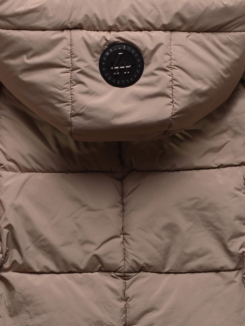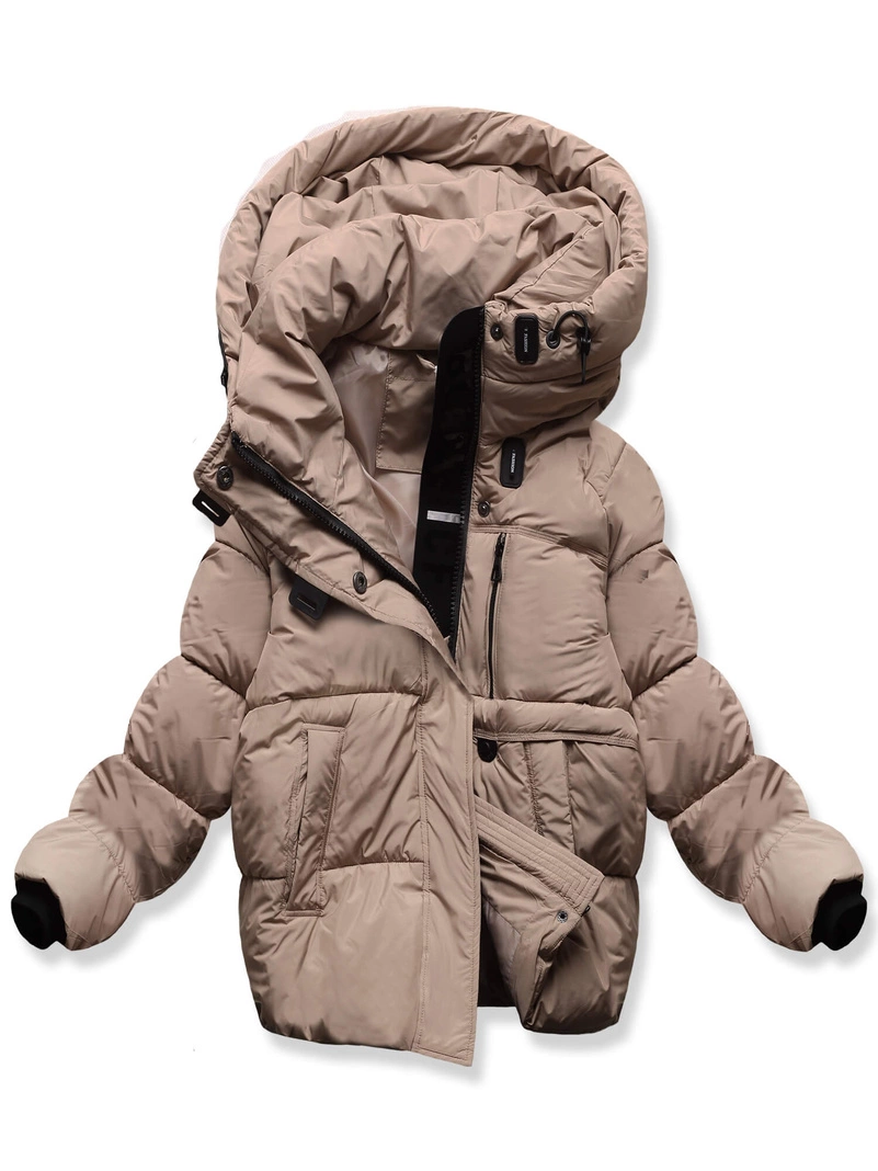 Brązowa damska puchowa zimowa damska kurtka z unikalnym kapturem