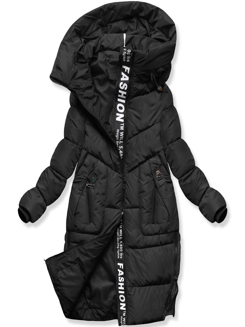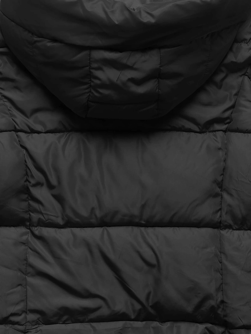 Czarna fantastyczna damska zimowa kurtka z kapturem