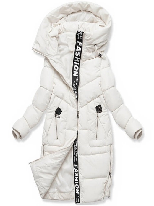 Ecru fantastyczna damska zimowa kurtka z kapturem