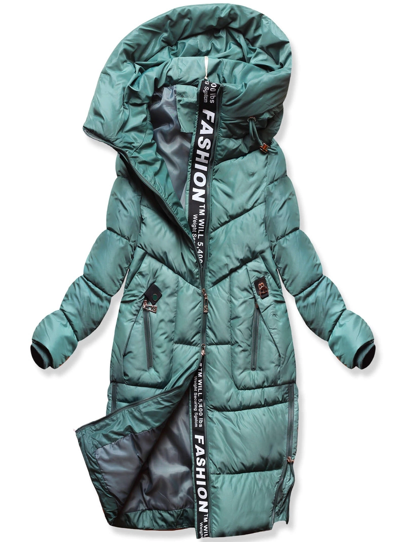 Ciemnozielona fantastyczna damska zimowa kurtka z kapturem