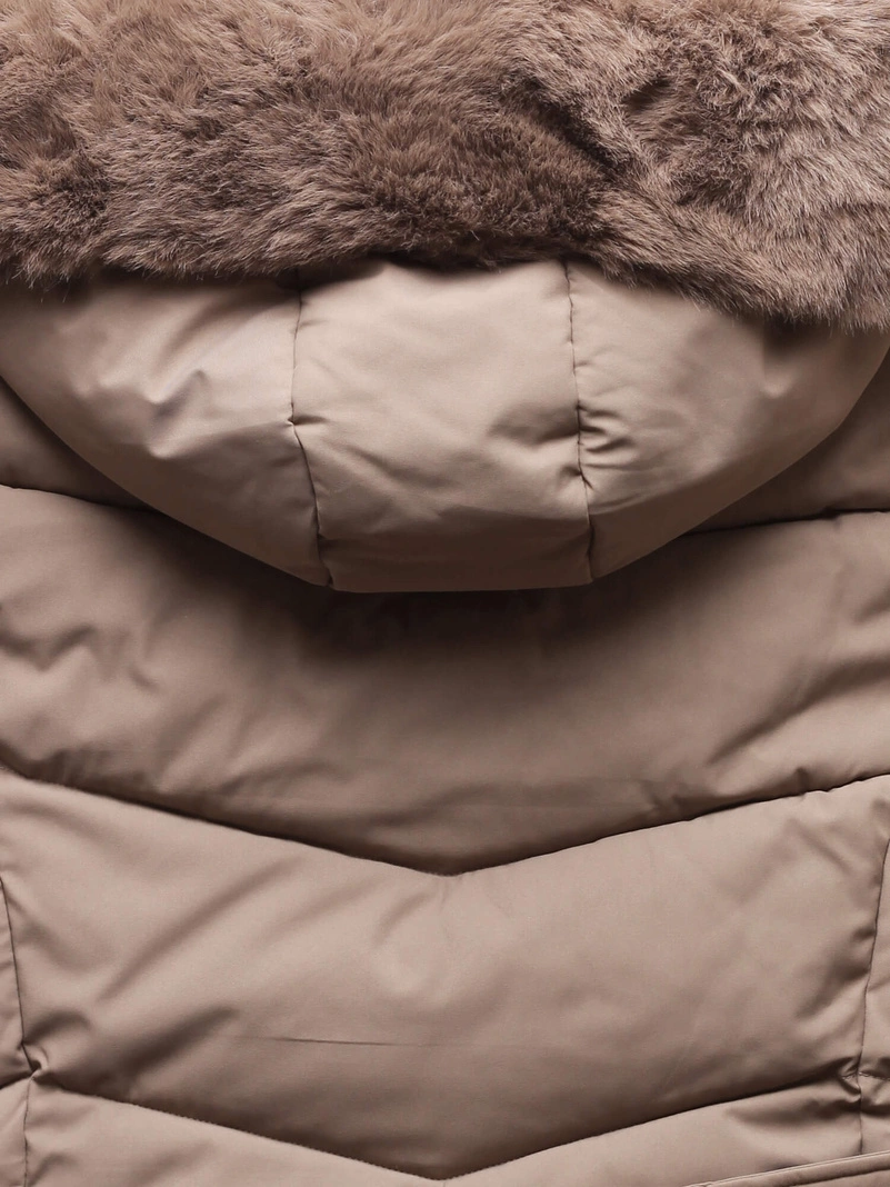 - Ciepła zimowa pikowana kurtka z futrzanym kapturem