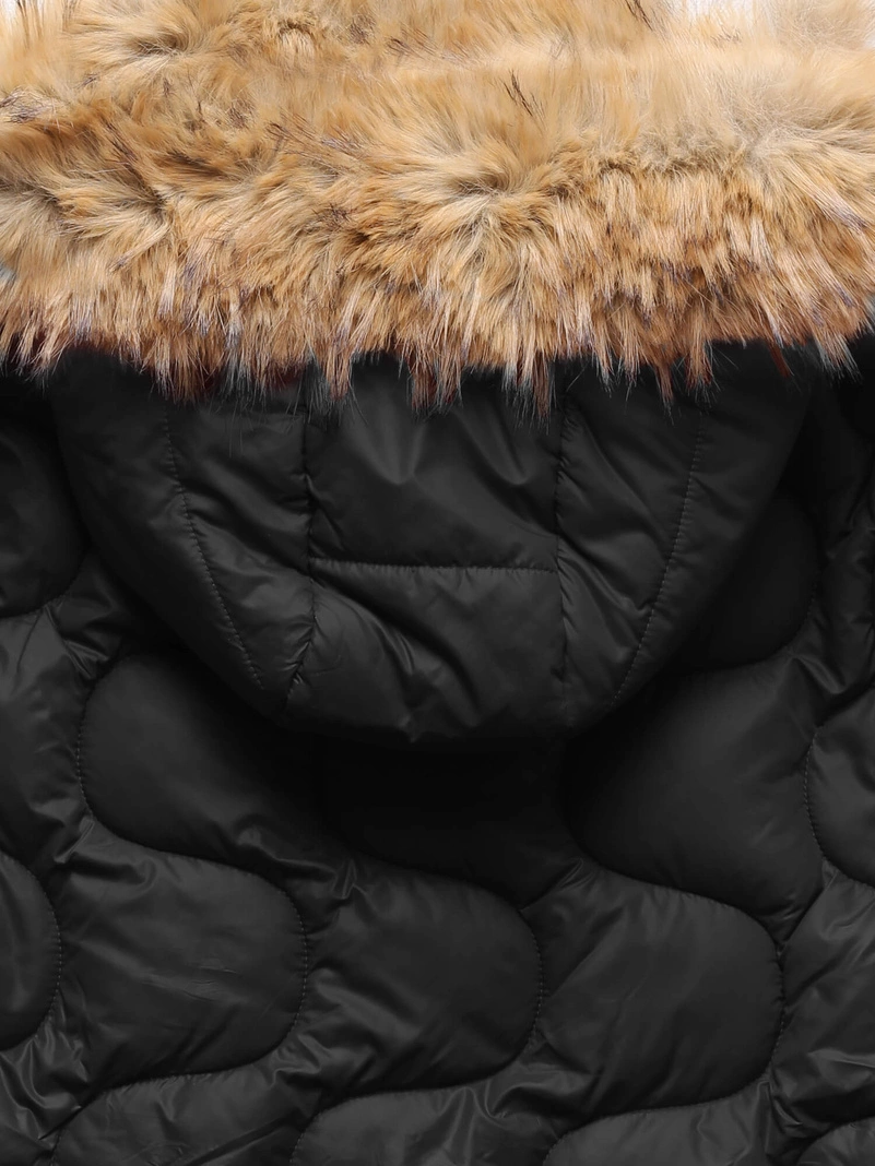 Czarna fenomenalna pikowana zimowa kurtka damska kożuch