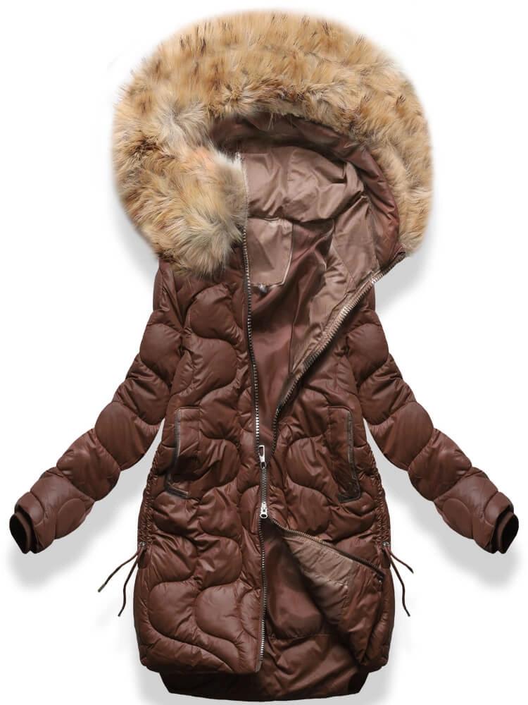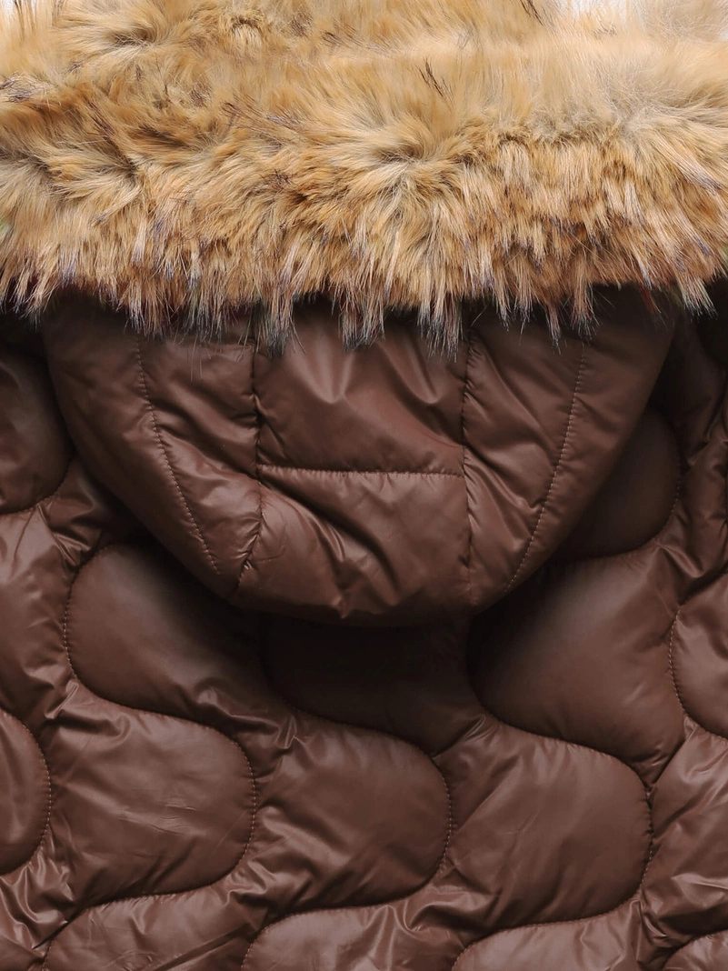 Czekoladowa fenomenalna pikowana zimowa kurtka damska kożuch