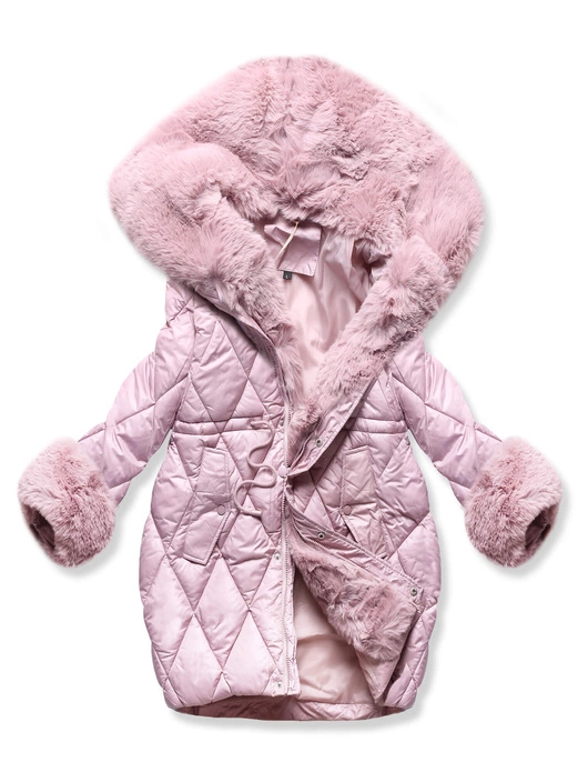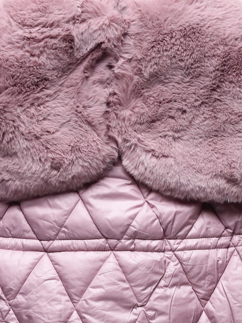 Różowa unikatowa damska kurtka zimowa z mega kołnierzem