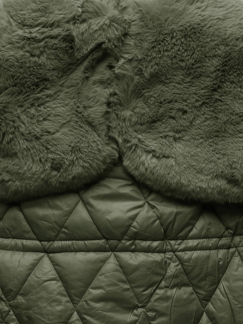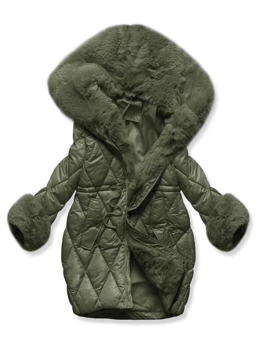 Khaki unikatowa damska kurtka zimowa z mega kołnierzem