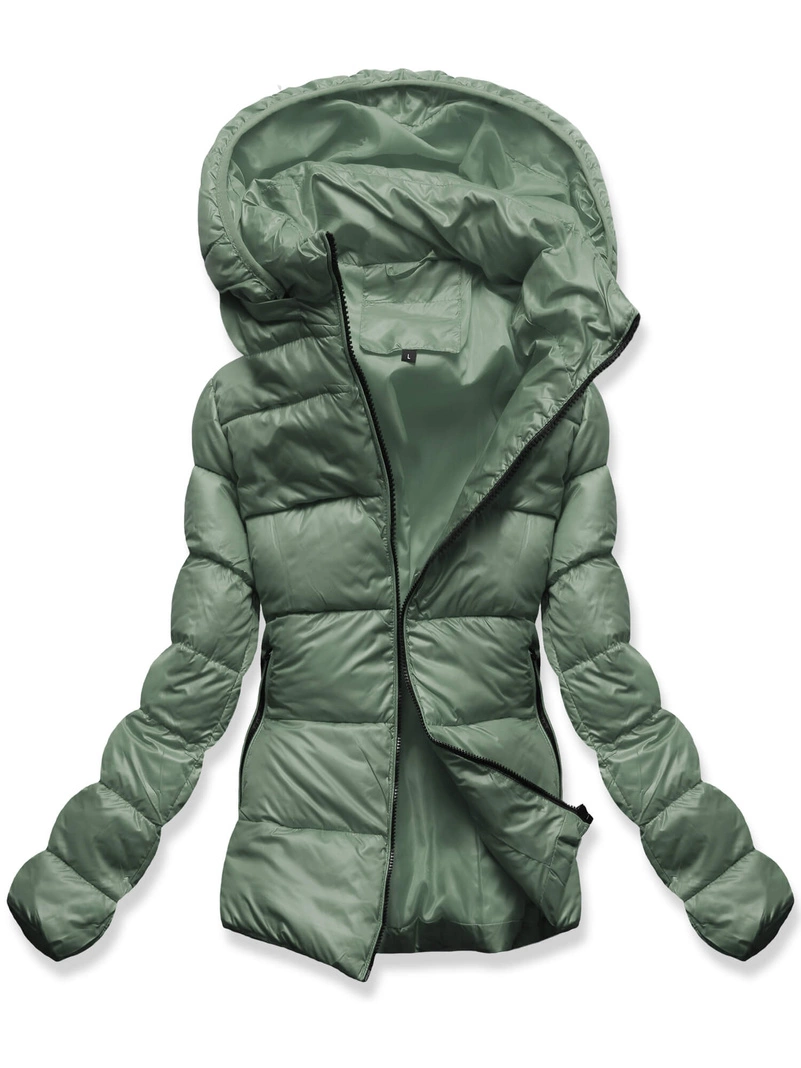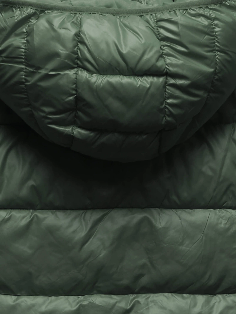 Ciemnozielona damska długa pikowana kurtka z kapturem