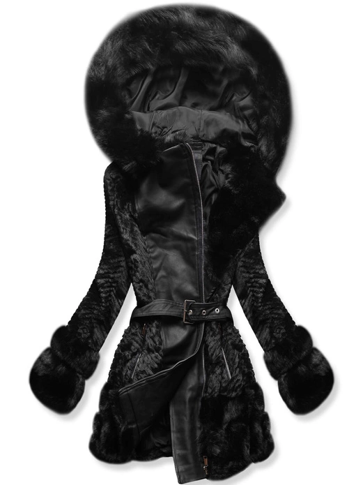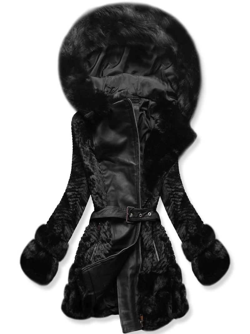 - Futrzana damska zimowa kurtka wstawki z elementami z ekoskóry