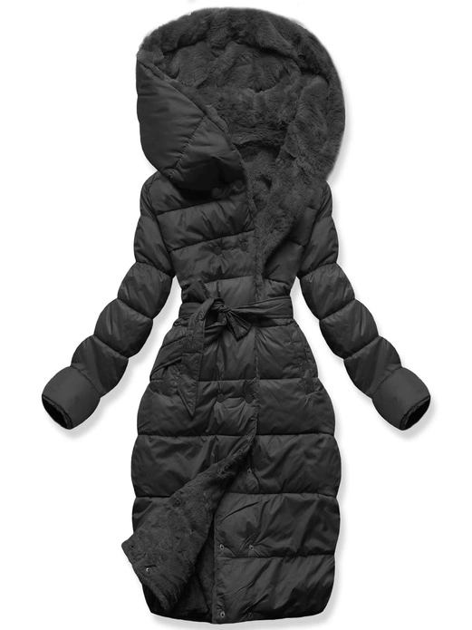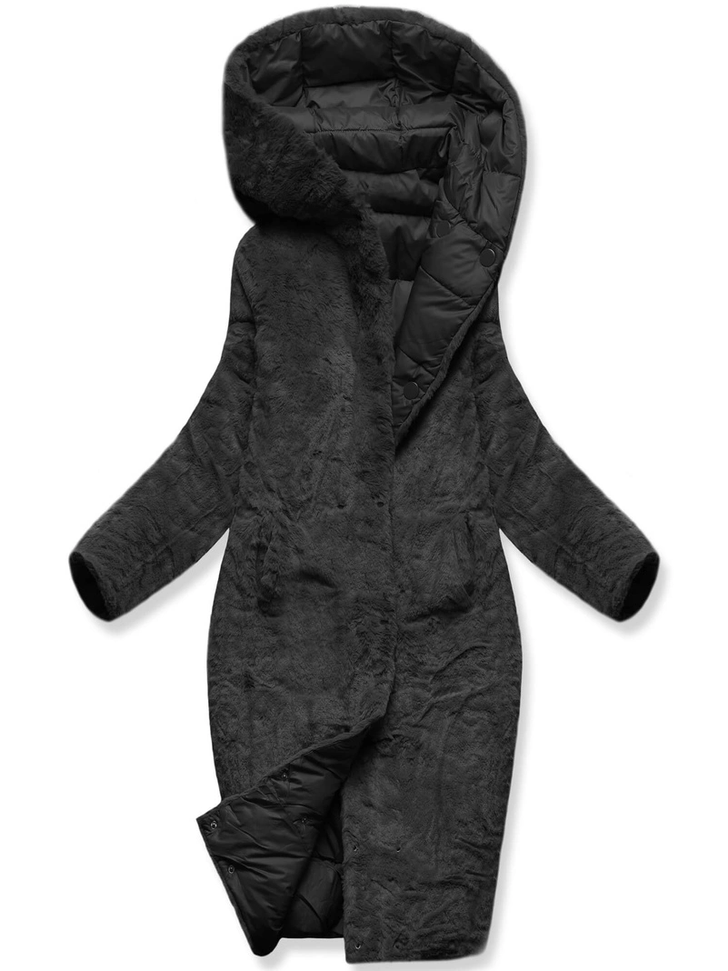Czarna zimowa dwustronna ciepła kurtka na futerku
