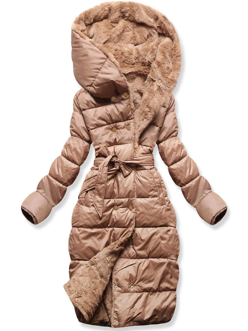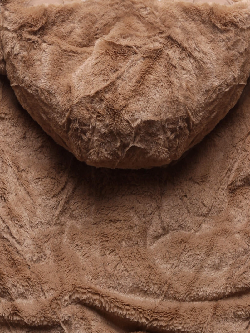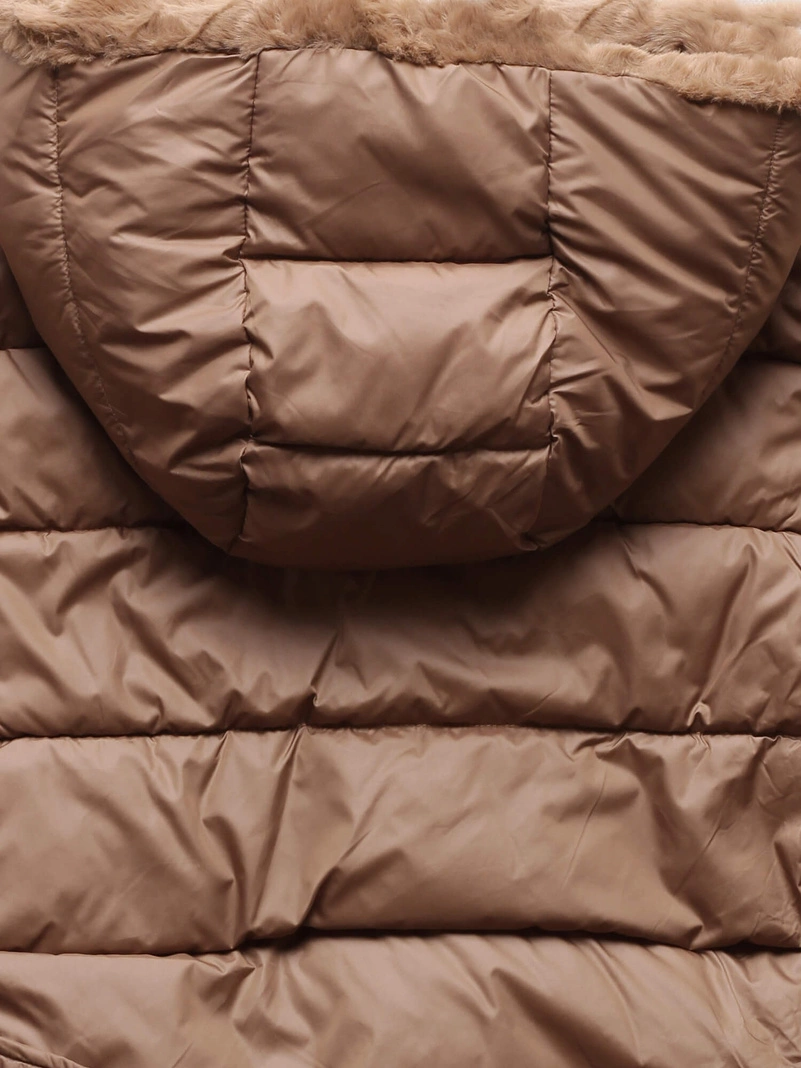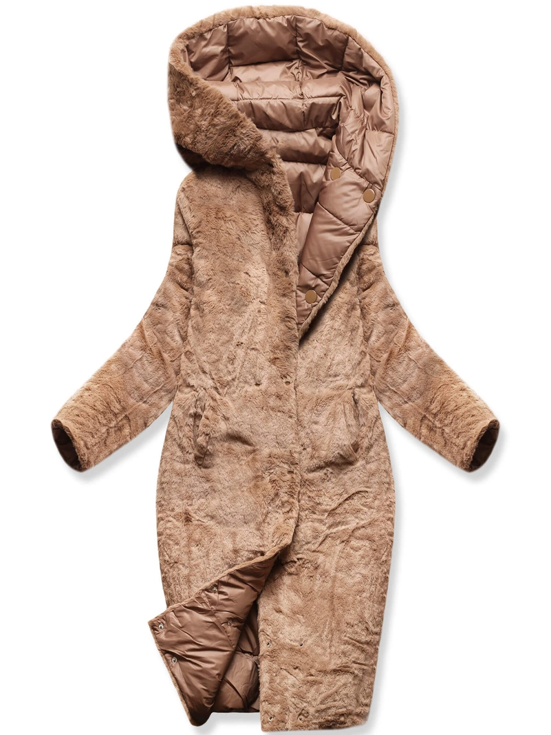 Brązowa zimowa dwustronna ciepła kurtka na futerku