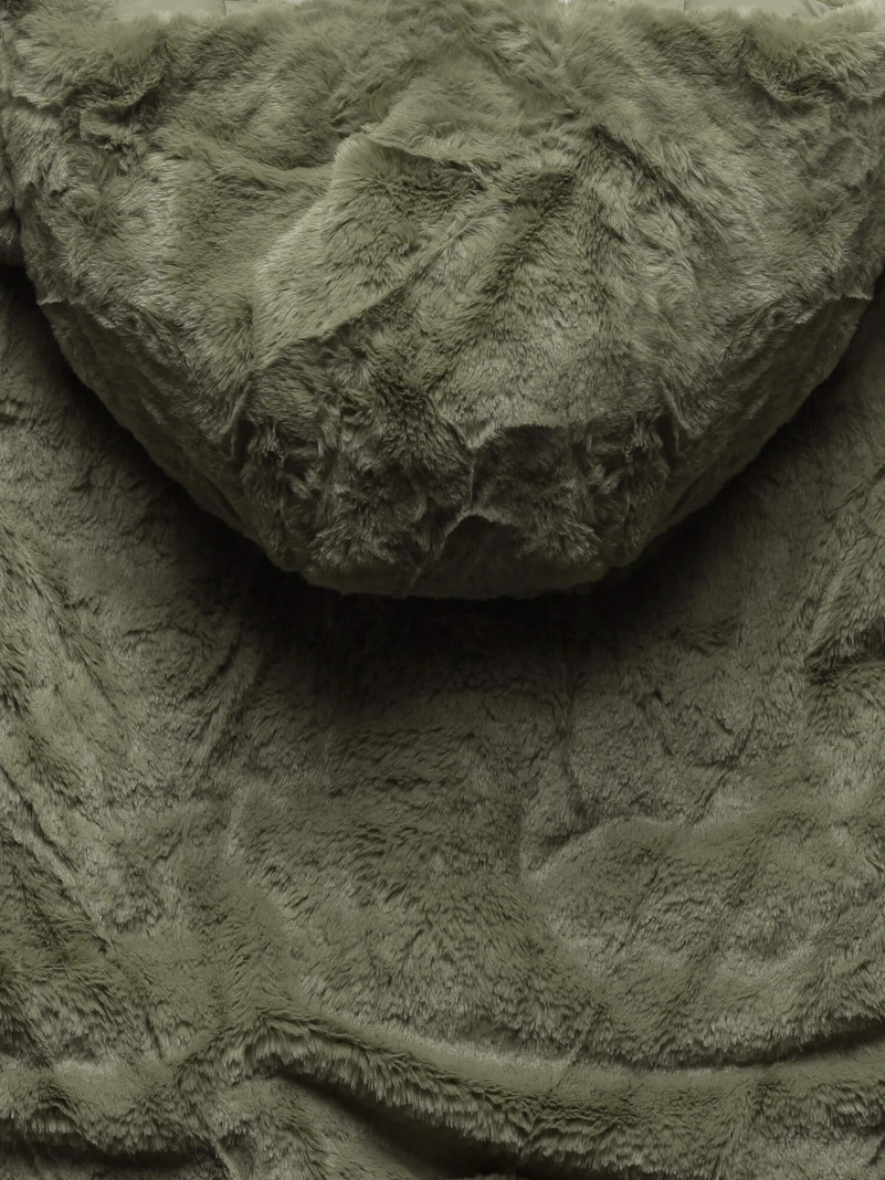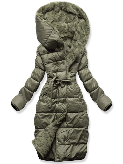 Khaki zimowa dwustronna ciepła kurtka na futerku