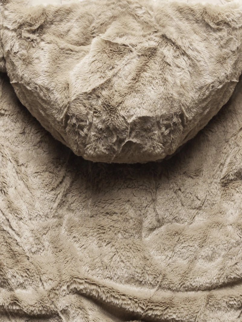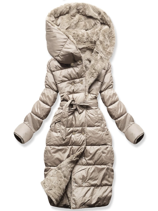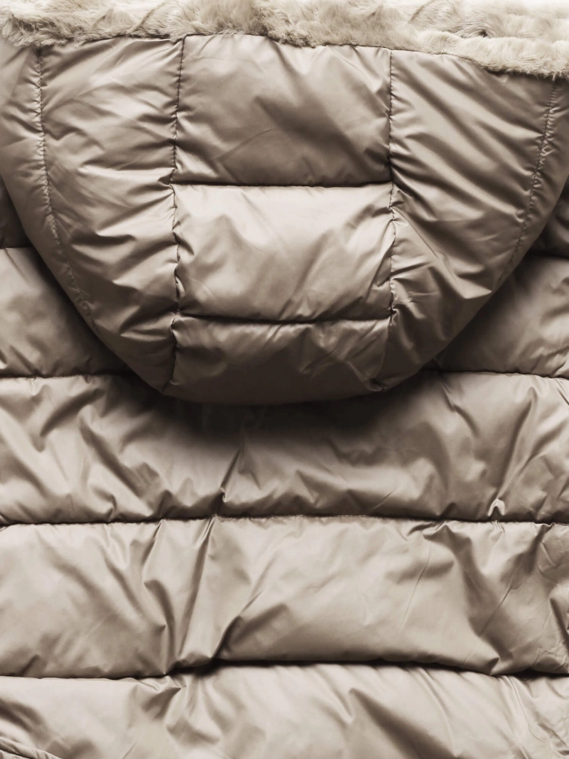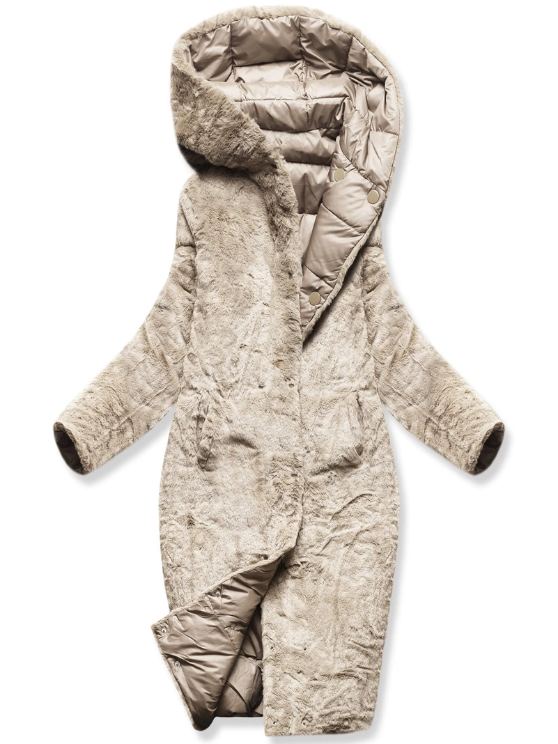 Beżowa zimowa dwustronna ciepła kurtka na futerku
