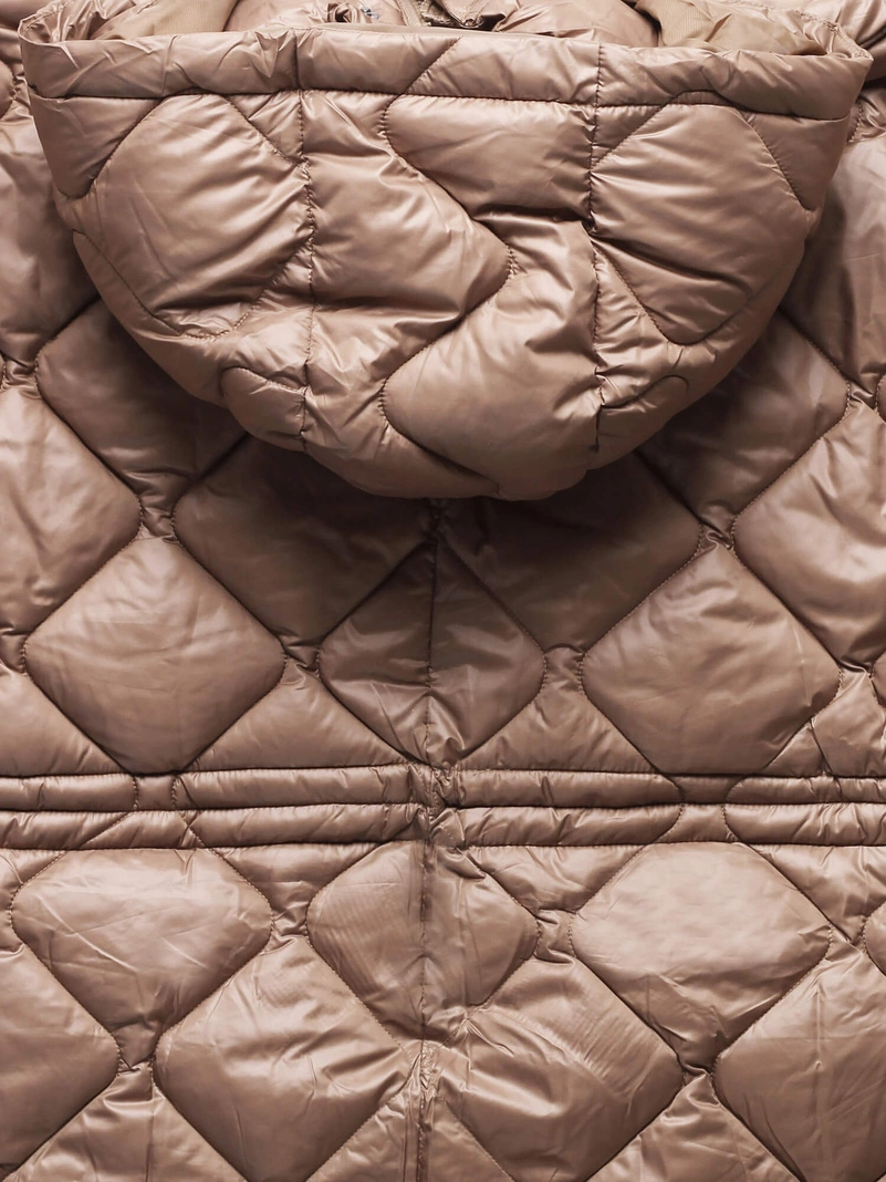 - Oversizowa zimowa damska pikowana w karo kurtka z kapturem