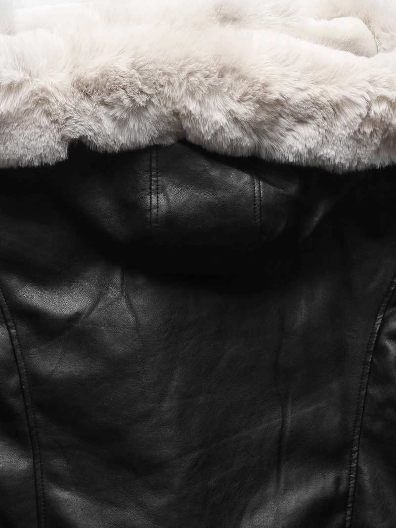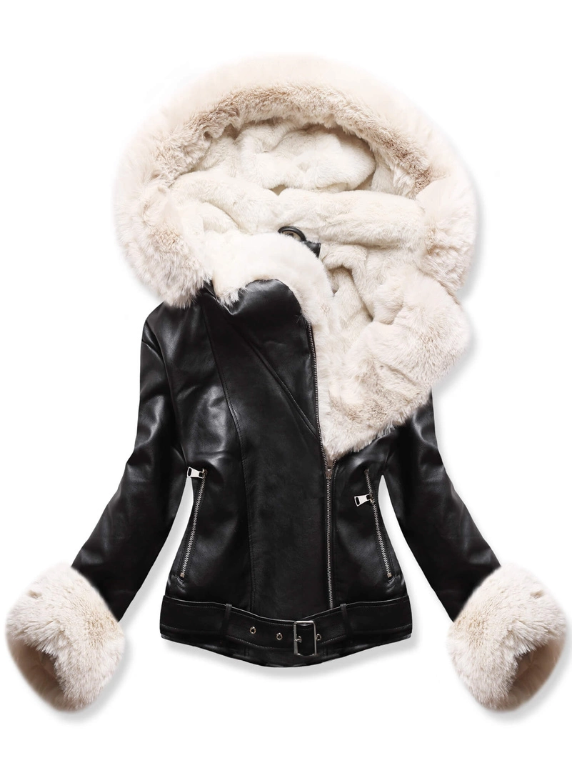 - Czarna genialna zimowa kurtka damska skórzana ramoneska na futrze