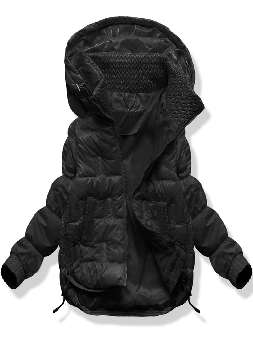 Czarna damska unikalnie pikowana kurtka ze ściagaczami