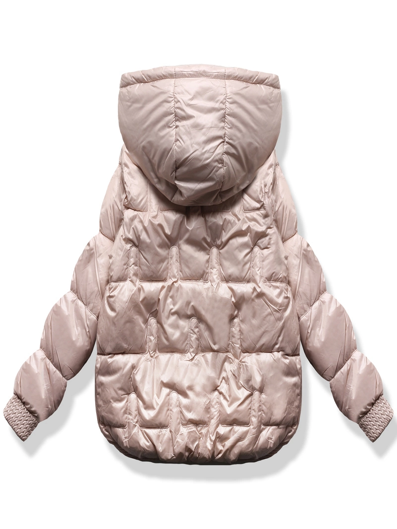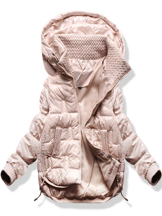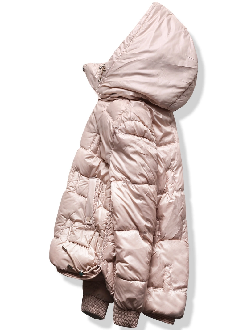 Perłowo różowa damska unikalnie pikowana kurtka ze ściagaczami