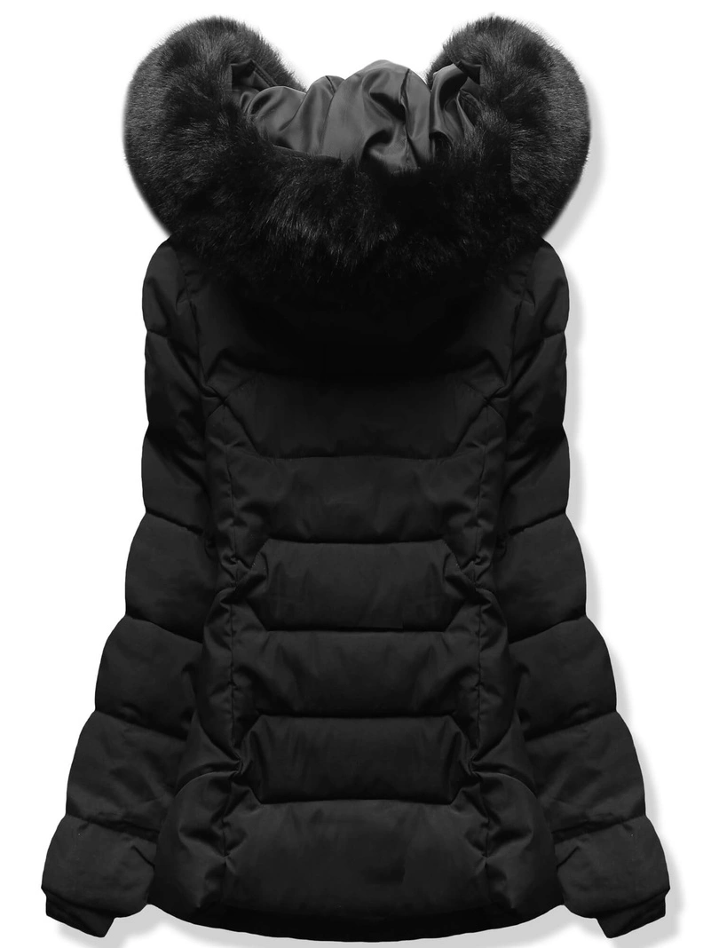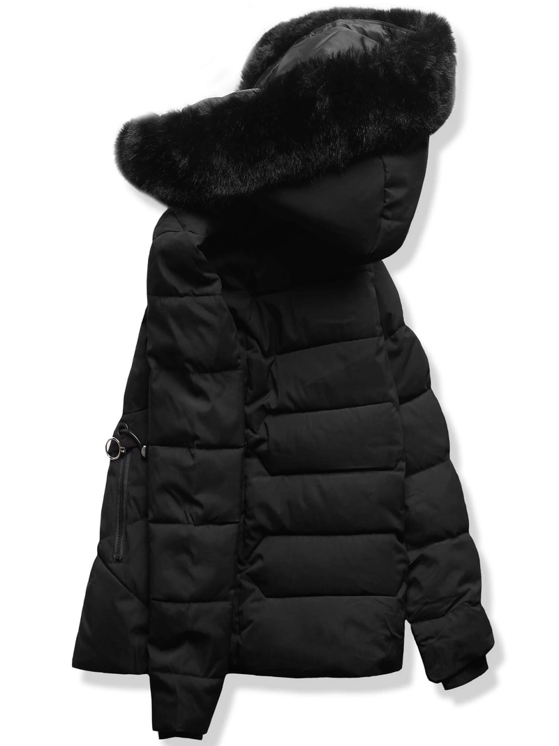- Czarna damska puchowa zimowa damska kurtka z kapturem