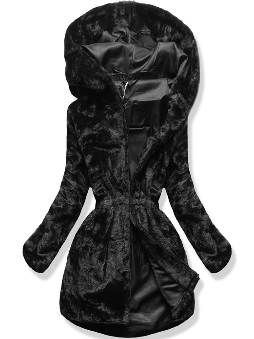 - Czarna damska futrzana zimowa kurtka z kapturem