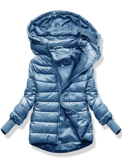 - Zimowa kurtka pikowana z kapturem z długimi ściągaczami zapinana na suwak