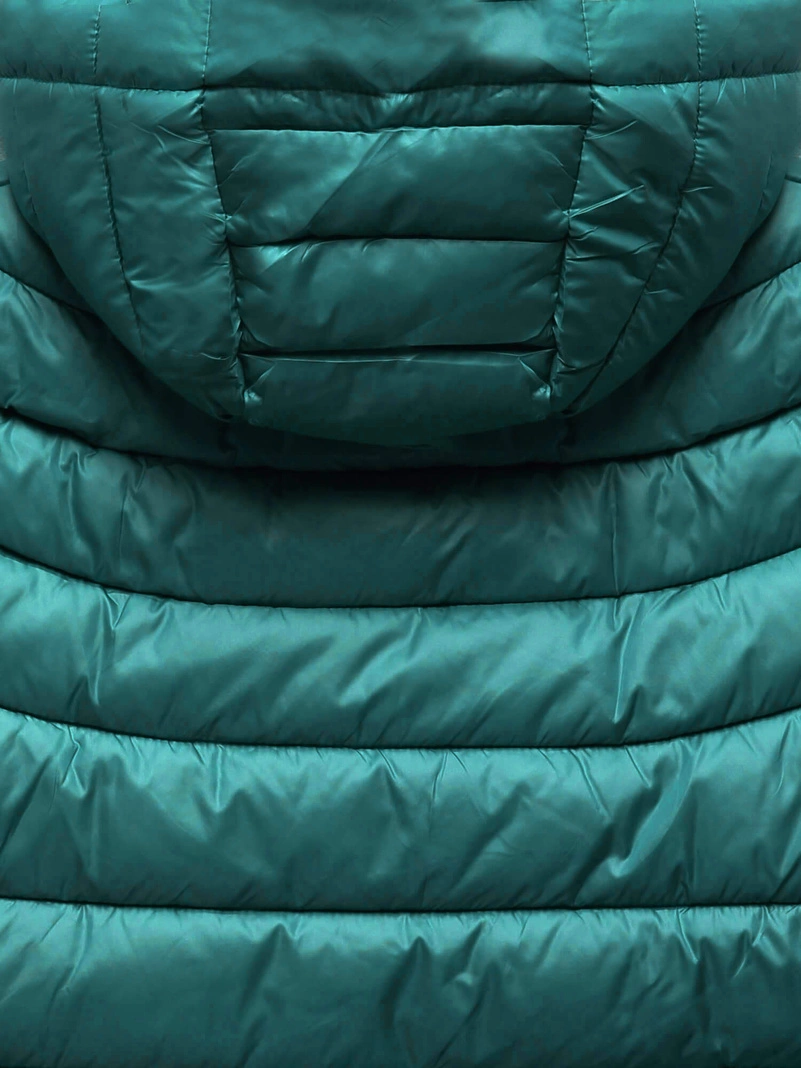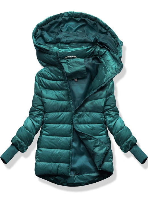 - Zimowa kurtka pikowana z kapturem z długimi ściągaczami zapinana na suwak
