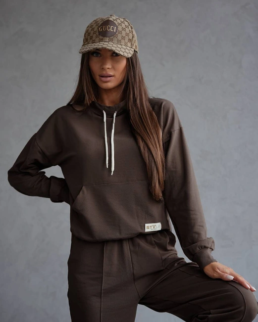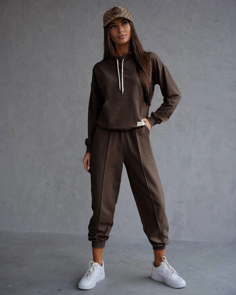 Beżowy czaderski damski dres komplet bluza stójka spodnie