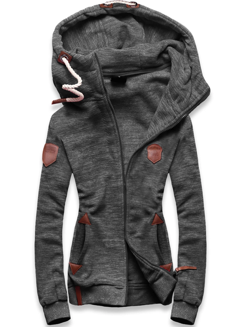 Grafitowa zapinana na suwak damska bluza z kapturem w serduszka