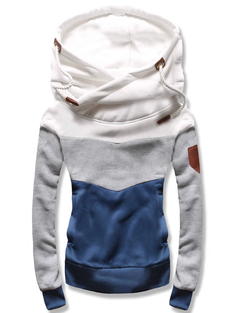 Biały szary granat trzykolorowa genialna bluza damska z kapturem