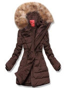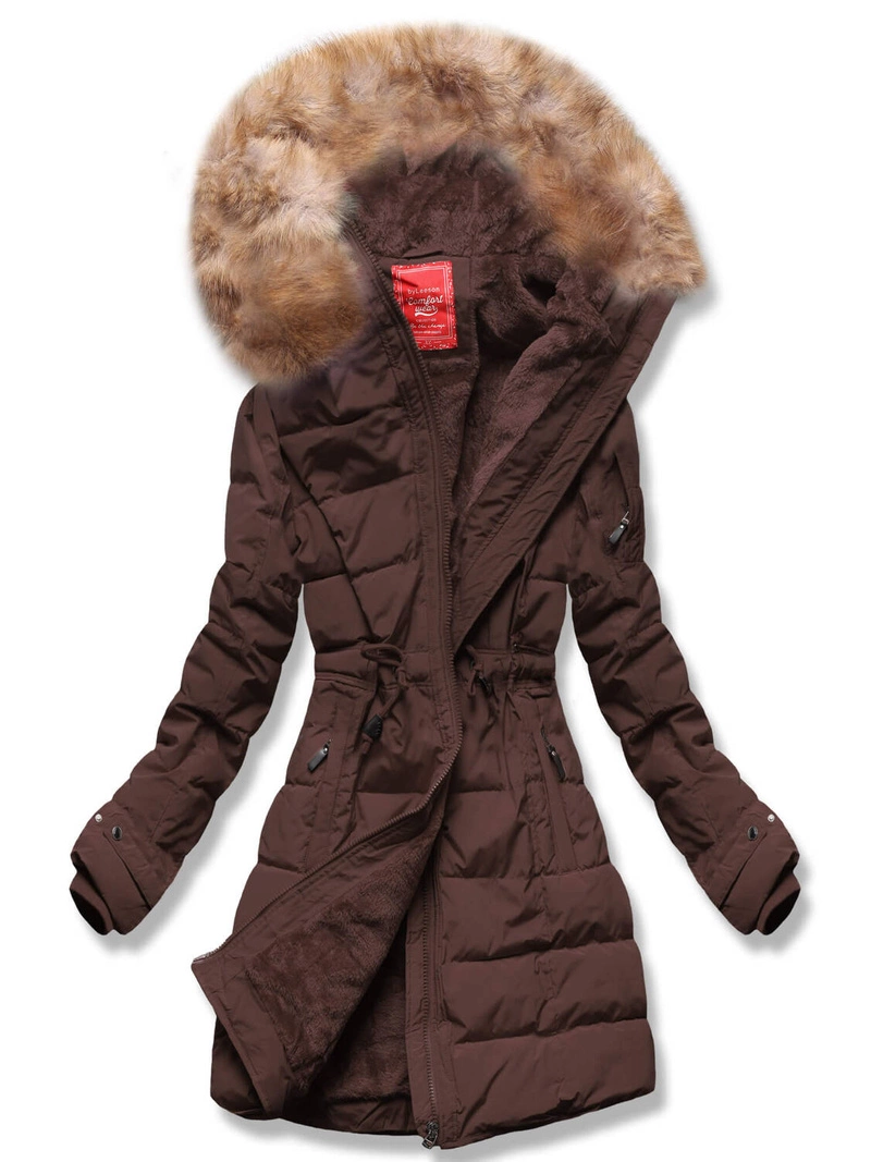 Brązowa zimowa genialna ocieplana zimowa kurtka płaszczyk z kapturem futerko
