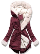 Bordowa ciepła kurtka parka na misiu z kapturem