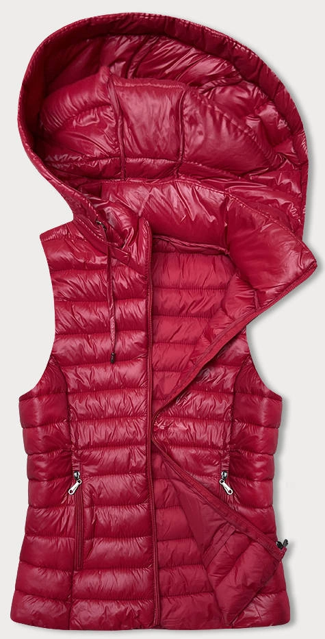 Czerwony pikowany bezrękawnik z kapturem