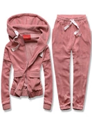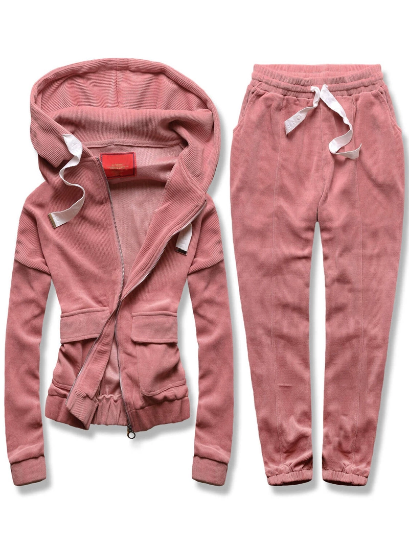 Różowy prążkowany dres komplet z kapturem