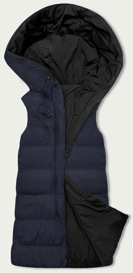 Granatowo czarny dwustronny pikowany bezrękawnik z kapturem