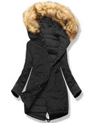 Czarna kapitalna pikowana zimowa kurtka z futerkiem