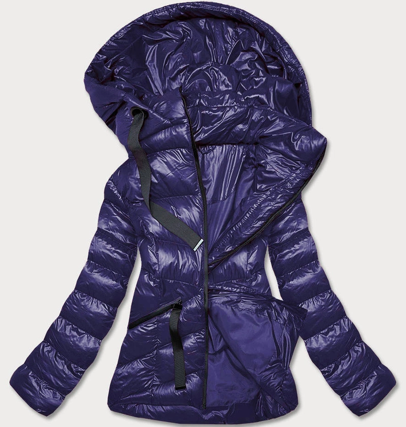 Granatowa zimowa damska ciepła kurtka z kapturem