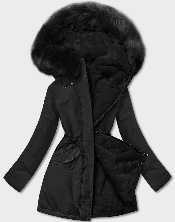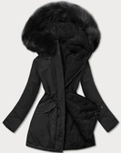 Czarna dwustronna zimowa parka na futrze